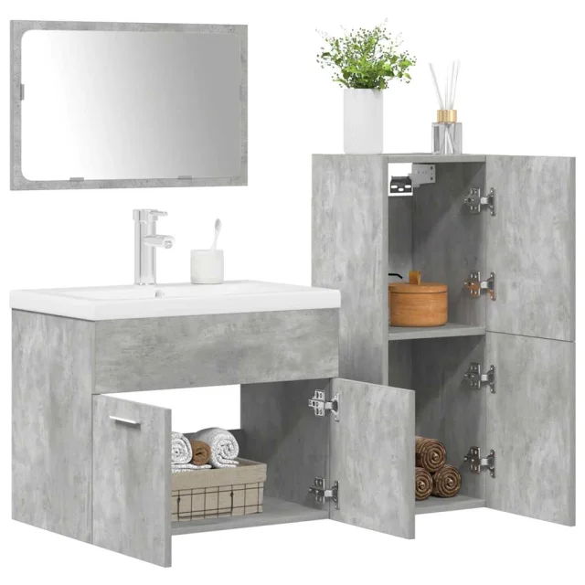 vidaXL Kopalniško pohištvo 4 kosa betonsko sive barve konstruiran les