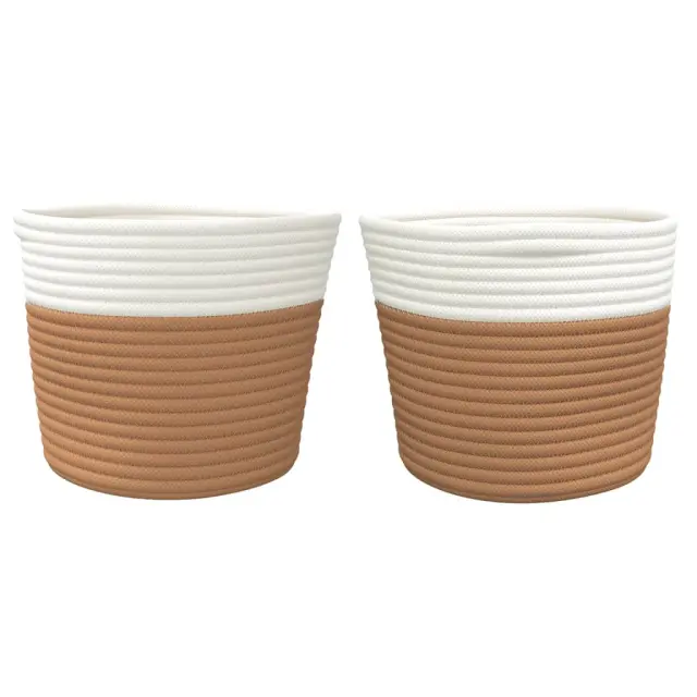 vidaXL Košara za shranjevanje 2 kosa rjava in bela Ø24x18 cm bombaž