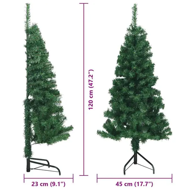 vidaXL Kotično umetno božično drevo Zelena 120 cm PVC in kovina
