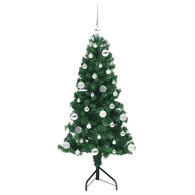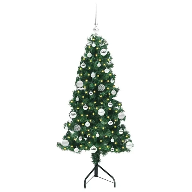 vidaXL Kotično umetno božično drevo Zelena 150 cm PVC in kovina