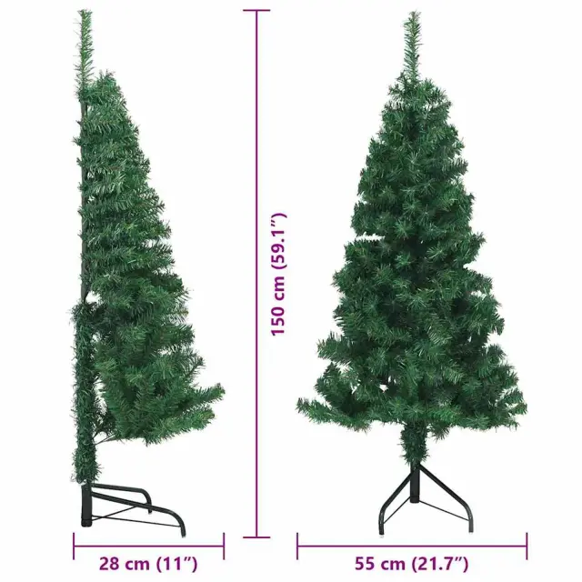vidaXL Kotično umetno božično drevo Zelena 150 cm PVC in kovina