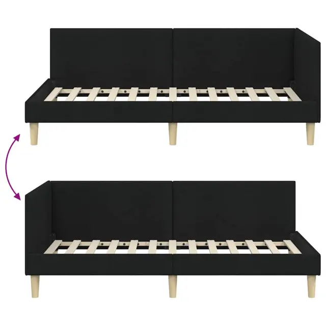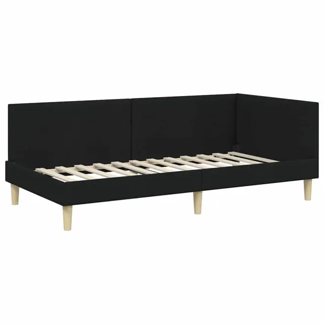 vidaXL Kotna postelja Drugo Črna 90 x 200 cm Tkanina in oblikovan les