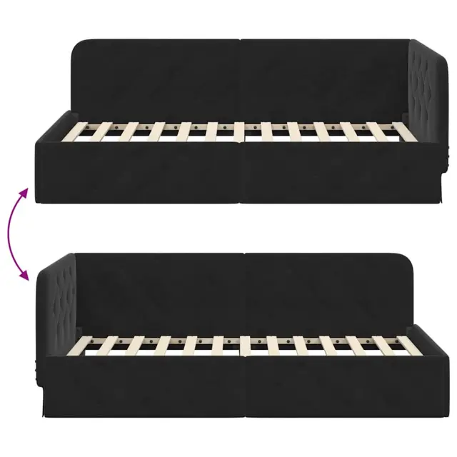 vidaXL Kotna postelja z vzglavjem Črna 90 x 200 cm Žamet