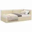 vidaXL Kotna postelja z vzglavjem krema 100 x 200 cm blago