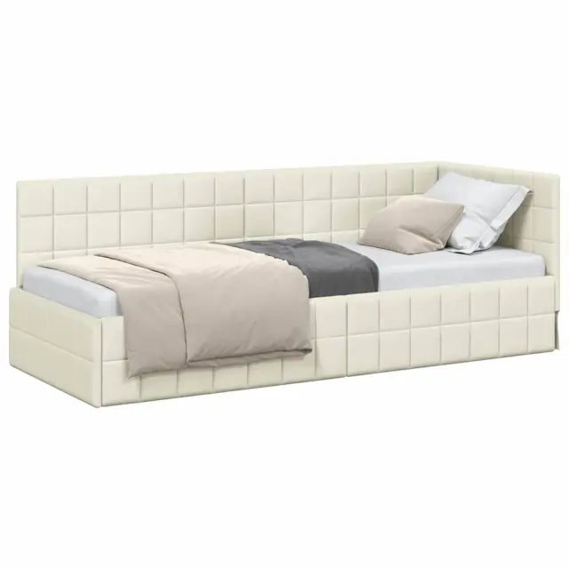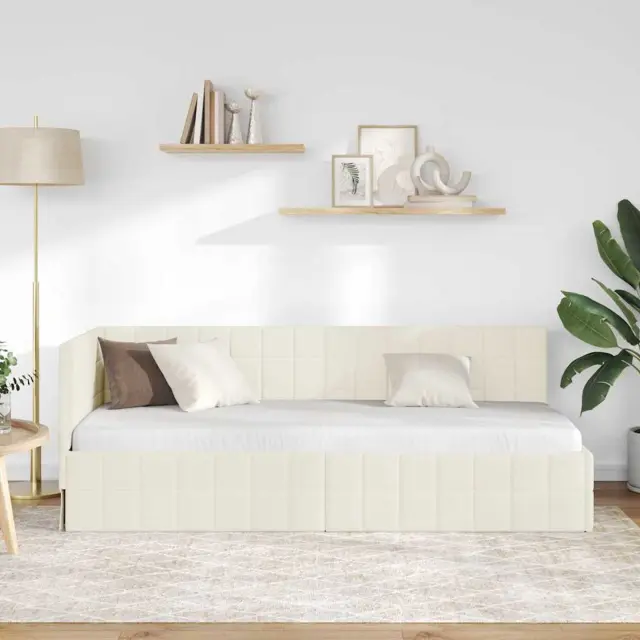 vidaXL Kotna postelja z vzglavjem krema 80 x 200 cm Žamet