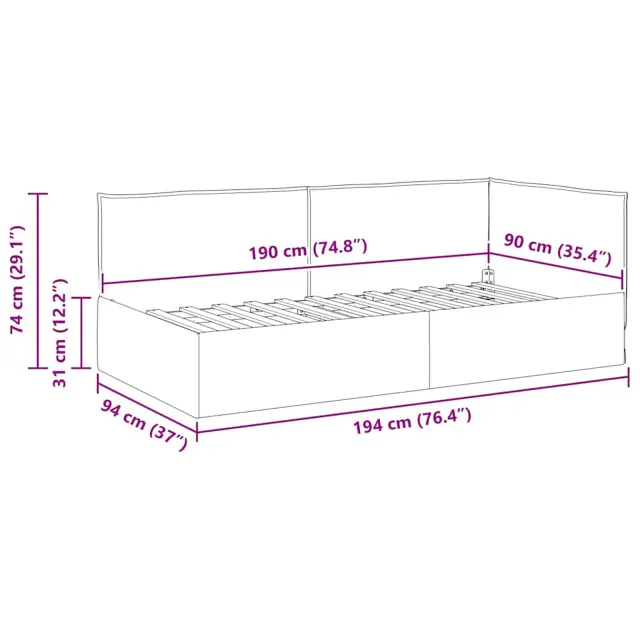vidaXL Kotna postelja z vzglavjem Modra 90 x 190 cm blago