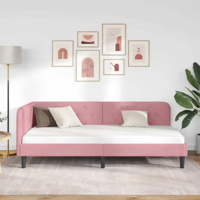 vidaXL Kotna postelja z vzglavjem Roza 100 x 200 cm Žamet