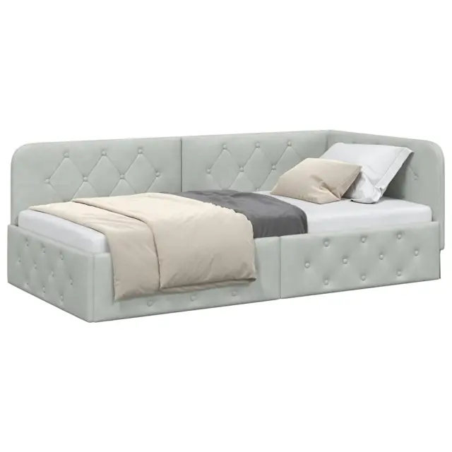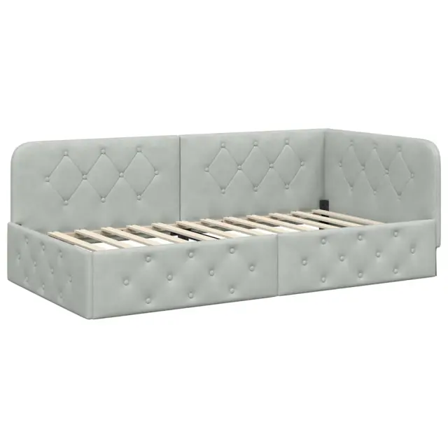 vidaXL Kotna postelja z vzglavjem Svetlo siva 100 x 200 cm Žamet