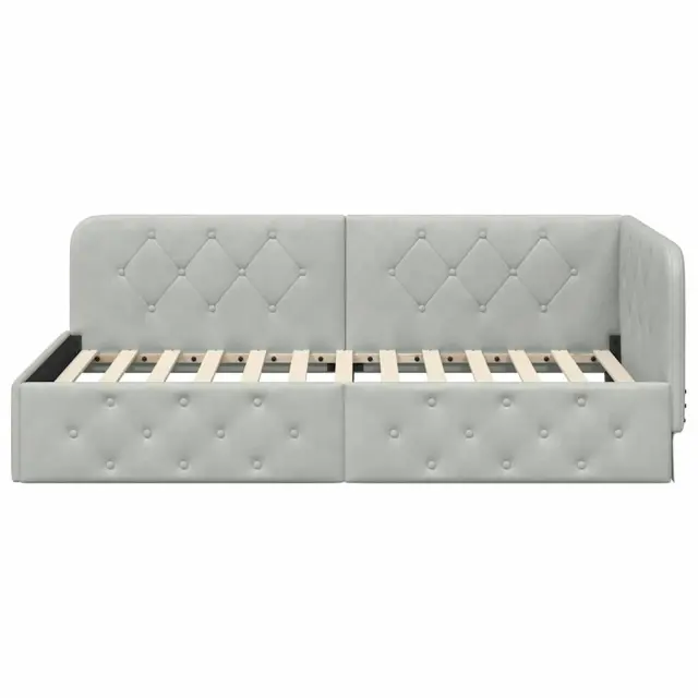 vidaXL Kotna postelja z vzglavjem Svetlo siva 90 x 200 cm Žamet