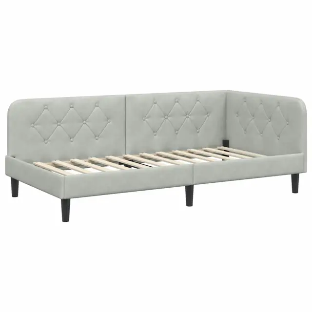 vidaXL Kotna postelja z vzglavjem Svetlo siva 90 x 200 cm Žamet