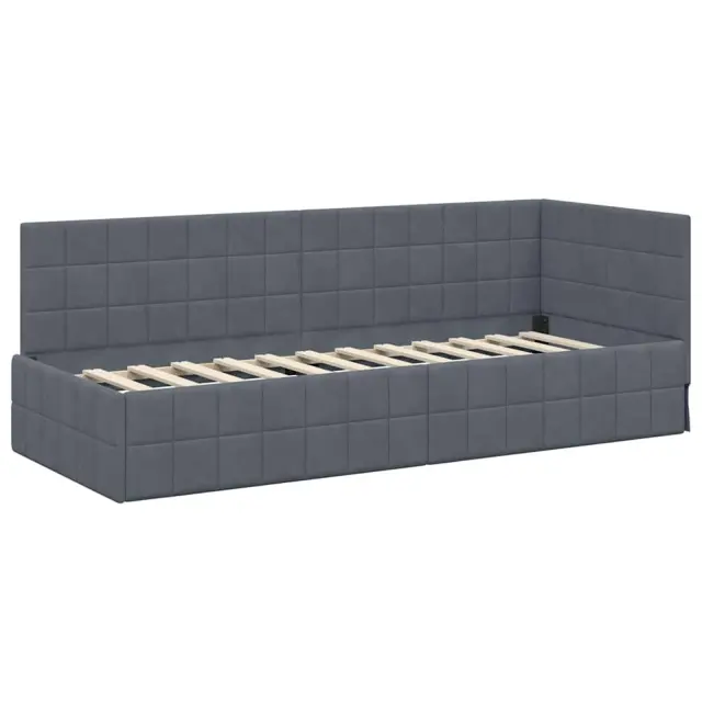 vidaXL Kotna postelja z vzglavjem Temno siva 80 x 200 cm Žamet