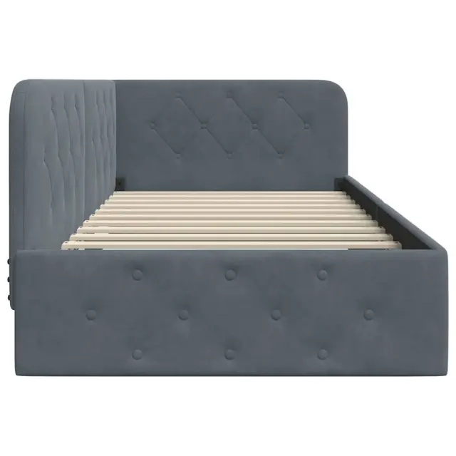 vidaXL Kotna postelja z vzglavjem Temno siva 90 x 200 cm Žamet