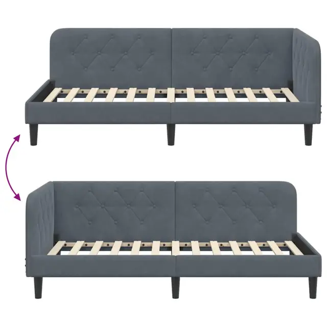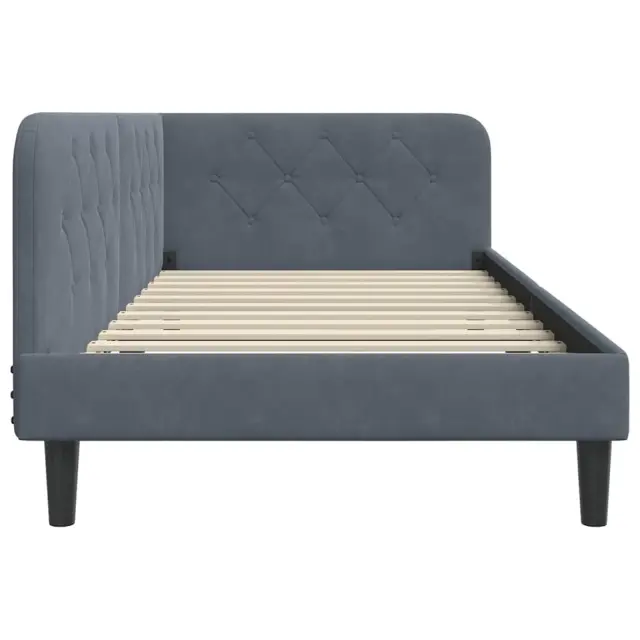 vidaXL Kotna postelja z vzglavjem Temno siva 90 x 200 cm Žamet