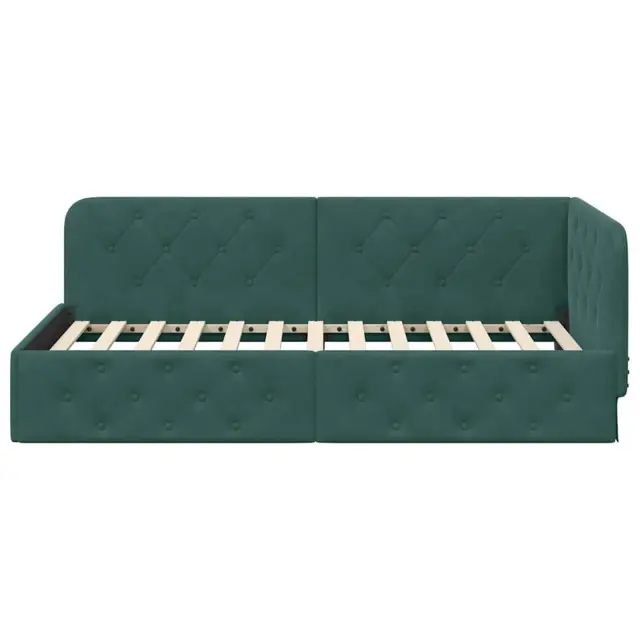vidaXL Kotna postelja z vzglavjem Temno zelena 100 x 200 cm Žamet
