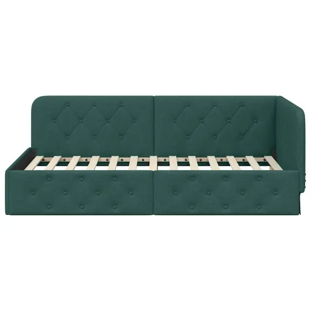 vidaXL Kotna postelja z vzglavjem Temno zelena 100 x 200 cm blago