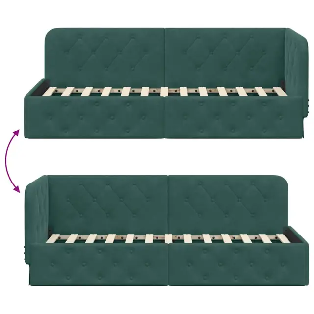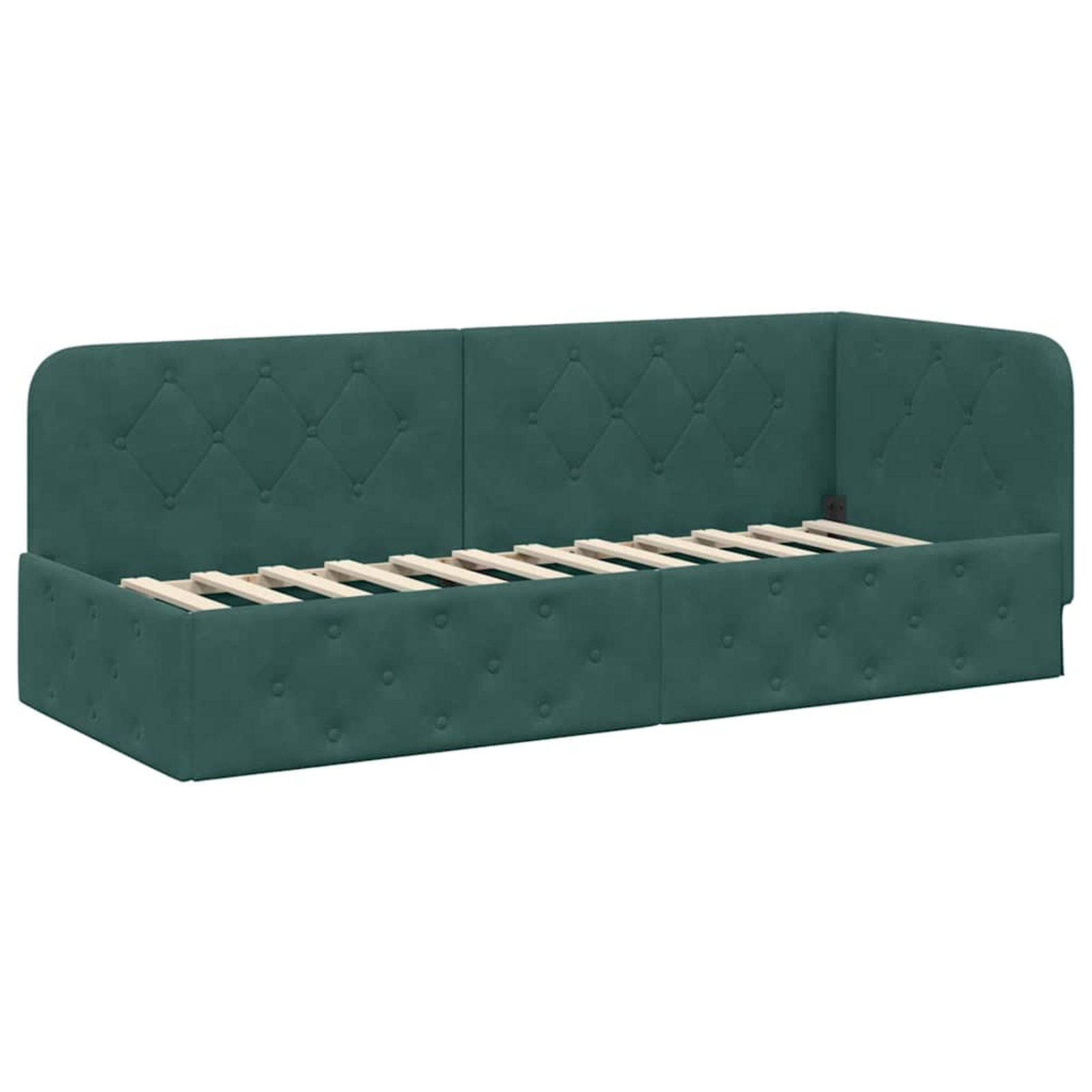 vidaXL Kotna postelja z vzglavjem Temno zelena 80 x 200 cm Žamet
