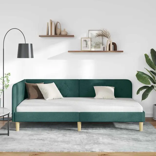 vidaXL Kotna postelja z vzglavjem Temno zelena 90 x 190 cm blago