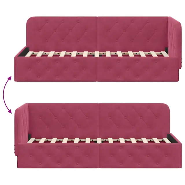 vidaXL Kotna postelja z vzglavjem Vinorodna rdeča 80 x 200 cm Žamet