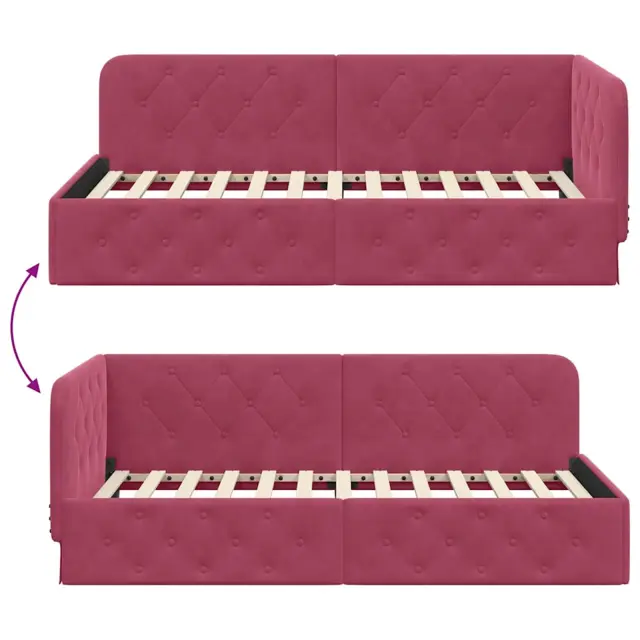 vidaXL Kotna postelja z vzglavjem Vinorodna rdeča 90 x 190 cm Žamet
