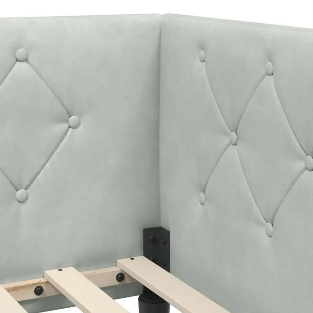 Ta moderni žametni okvir postelje je odlična kombinacija sloga in funkcionalnosti za vsako spalnico. Z L-obliko se super prilega v kot, kar prihrani prostor in se prilega raznim ureditvam. Žametni material pa poskrbi za prijeten občutek, ki dodatno poživlja ta fantastičen kos pohištva.