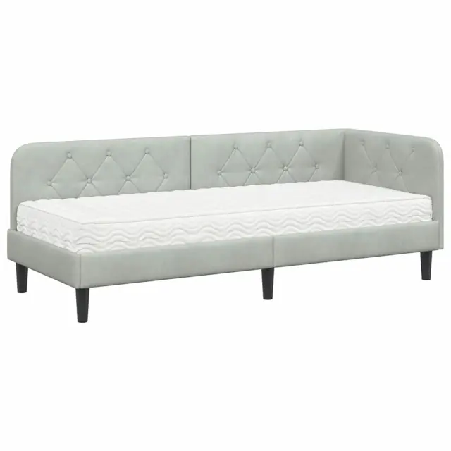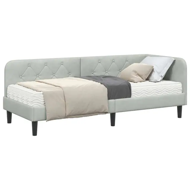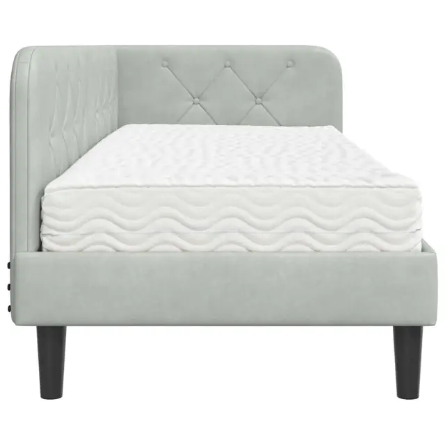 vidaXL Kotna postelja z vzmetnico Svetlo siva 80 x 200 cm Žamet