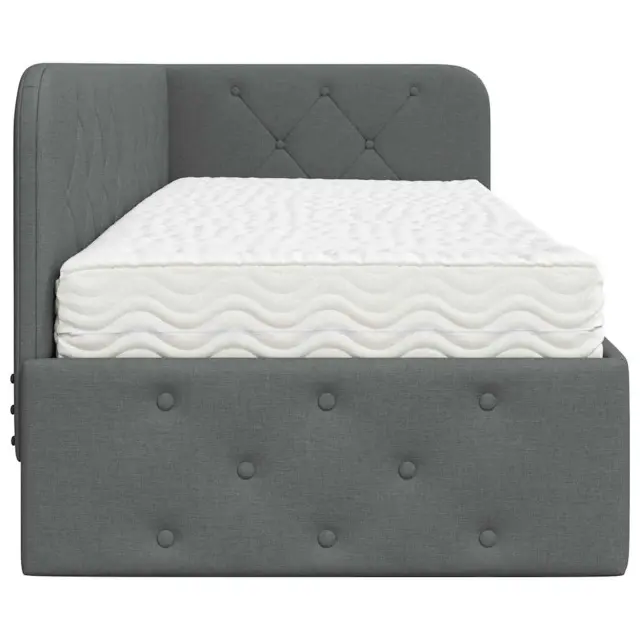 Ta okvir postelje iz tkanine ima modern dizajn, ki se super prilega v kot vaše spalnice, pri čemer prihrani cenn prostor na tleh in doda poseben videz vašemu prostoru. Njegova vsestranska zasnova vam omogoča, da ga uporabljate kot udoben ležalnik ali običajno ležišče. Oblika okvirja je preprosta, kar je super za mestne apartmaje in minimalistične notranje prostore. Ta okvir postelje ponuja odlično kombinacijo videza in uporabnosti, idealen za tiste, ki želijo maksimizirati prostor v spalnici brez žrtvovanja stila.