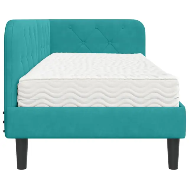 vidaXL Kotna postelja z vzmetnico Turkizna 80 x 200 cm Žamet