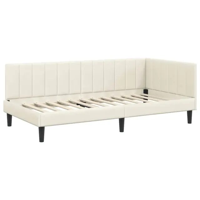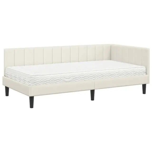 vidaXL Kotna postelja z vzmetnico z vzglavjem krema 100 x 200 cm Žamet