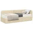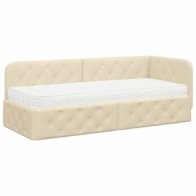 vidaXL Kotna postelja z vzmetnico z vzglavjem krema 80 x 200 cm blago