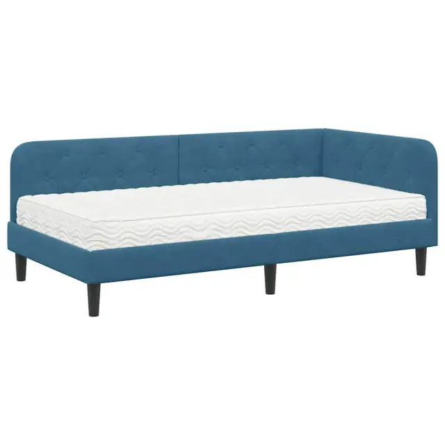 vidaXL Kotna postelja z vzmetnico z vzglavjem Modra 100 x 200 cm Žamet