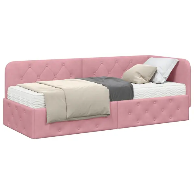 vidaXL Kotna postelja z vzmetnico z vzglavjem Roza 80 x 200 cm Žamet