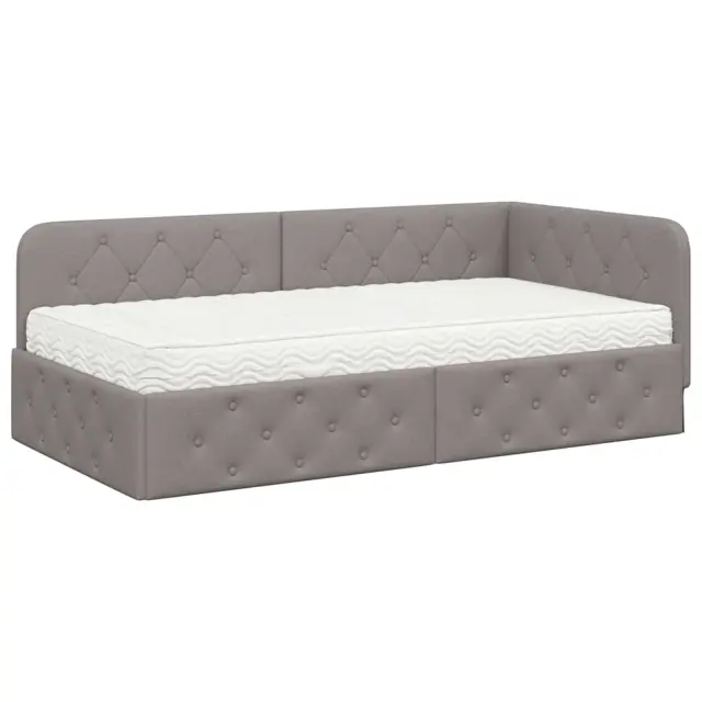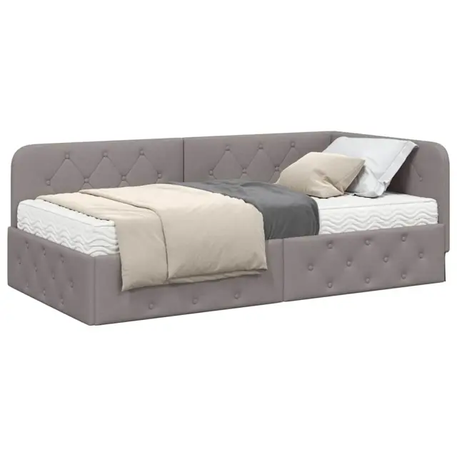 vidaXL Kotna postelja z vzmetnico z vzglavjem Taupe 100 x 200 cm blago
