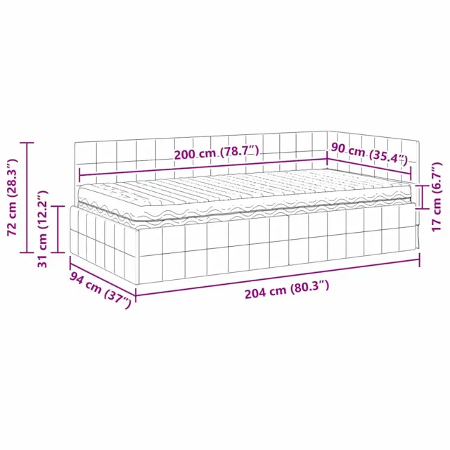 • 1 x Kotni okvir postelje: 204 x 94 x 72cm (D x Š x V)