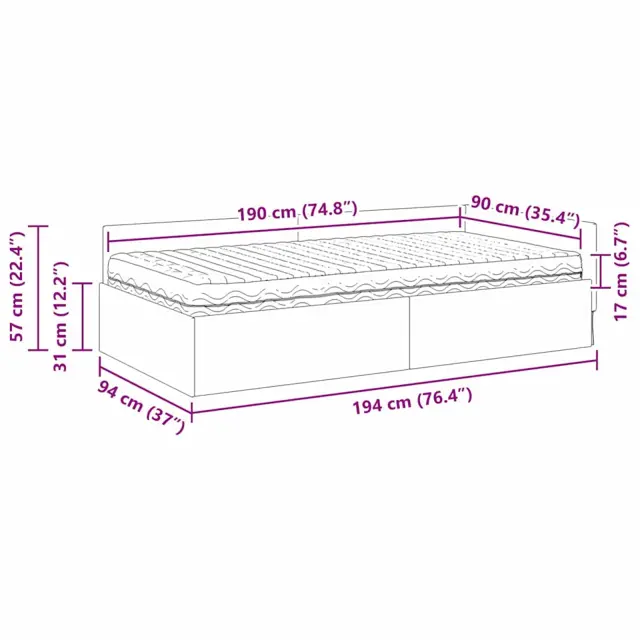 • 1 x Vzmetnica: 190 x 90 x 17 cm (DxŠxV)
