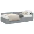 Ta tkaninska kotna postelja z vzmetnico prinaša sodobno eleganco in funkcionalen dizajn, idealna za vsako spalnico, ki želi popestriti svoj slog. Močna platforma ponuja strukturalno trdnost in estetsko privlačnost, kar jo naredi osrednji del sodobne dekoracije. Njena mehka in živahna obdelava se brez težav vklaplja v vsako oblikovalsko okolje, kar zagotavlja tako vizualno kot otipljivo zadovoljstvo.