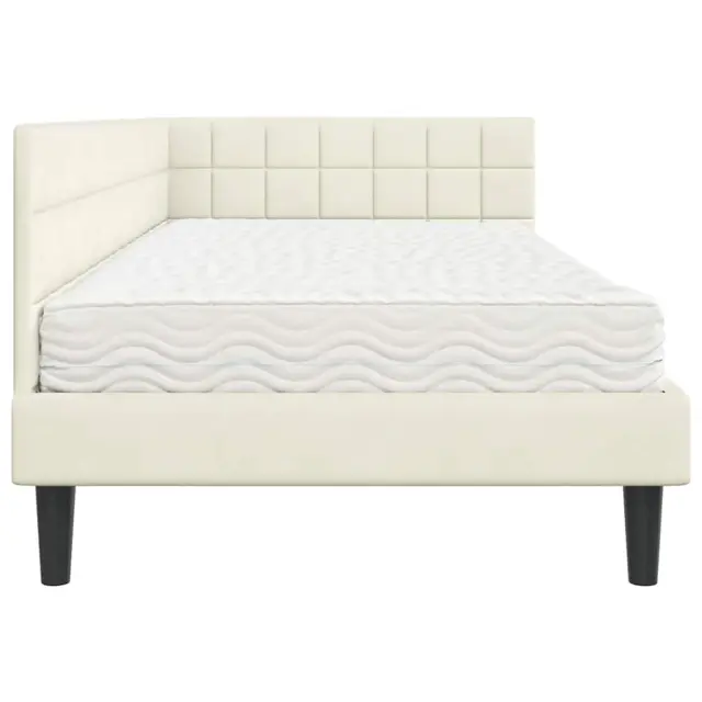vidaXL Kotni okvir postelje z matrico z vzglavjem 2 pcs krema Žamet