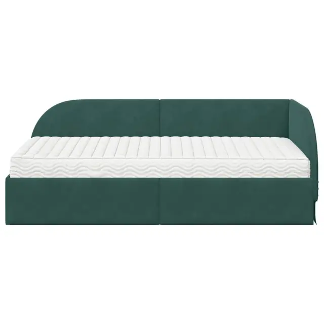 vidaXL Kotni okvir postelje z matrico z vzglavjem 2 pcs Zelena Žamet