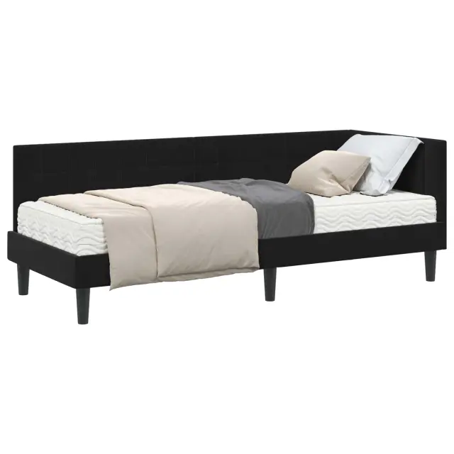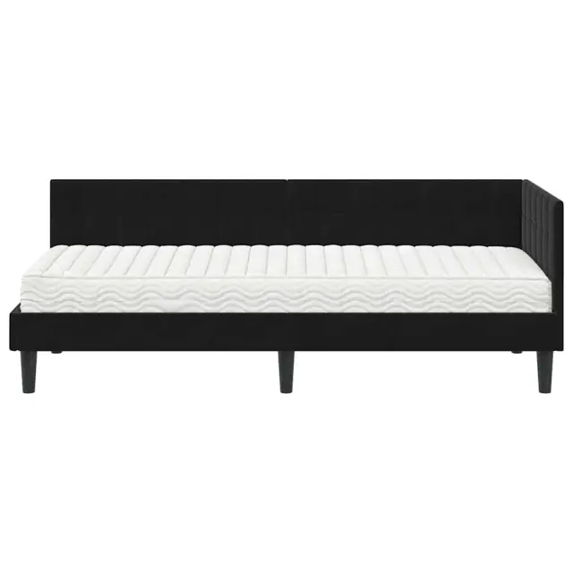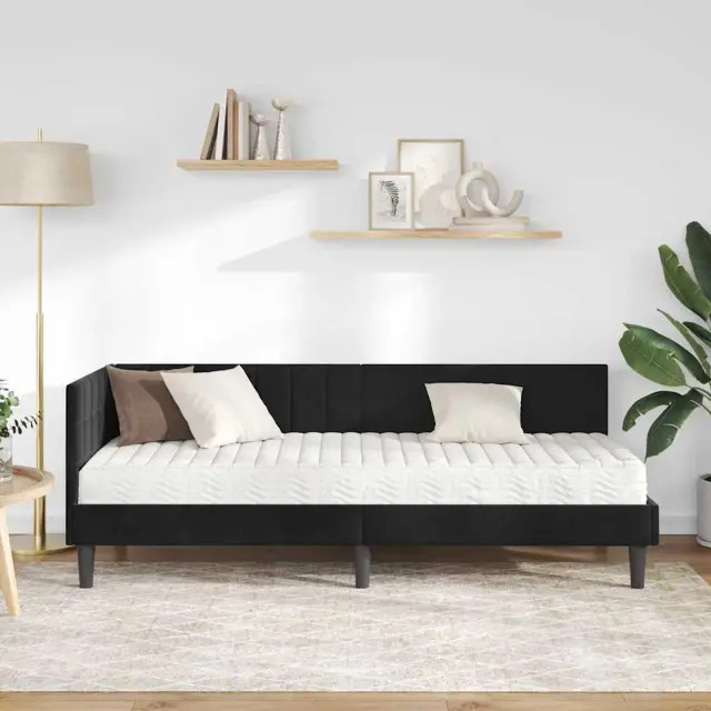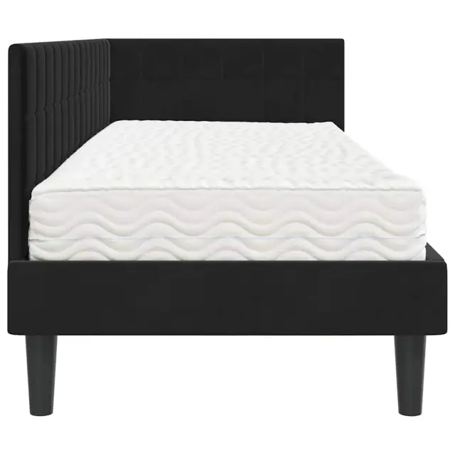 Ta posteljni okvir z vzmetnico brez težav združuje stil in funkcionalnost. Njegova preprosta pravokotna oblika v kombinaciji z žametnim zaključkom prinaša eleganco in sofisticiranost v vaš spalni prostor.