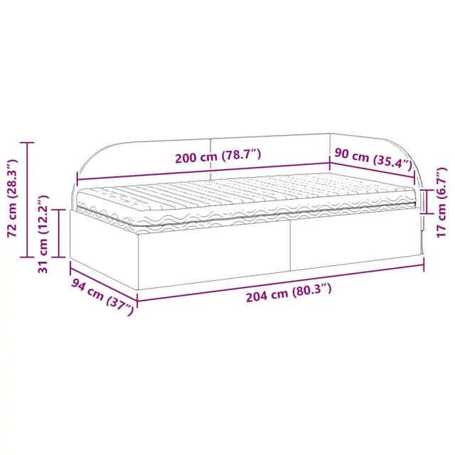 • 1 x vzmetnica: 200 x 100 x 17 cm (D x Š x V)