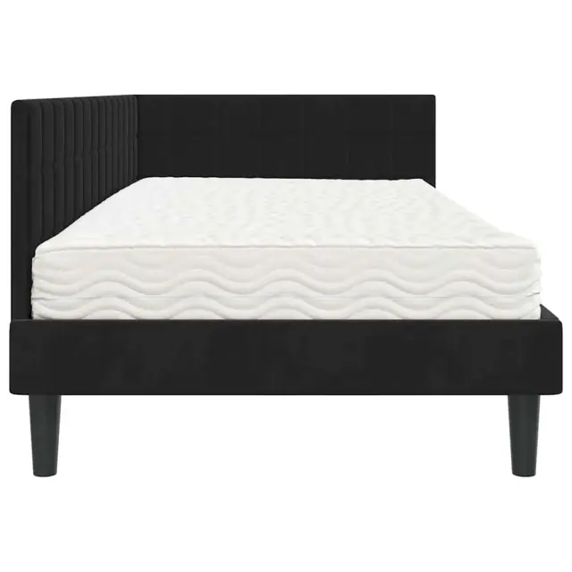 vidaXL Kotni okvir postelje z matrico z vzglavjem 2 pcs Črna Žamet