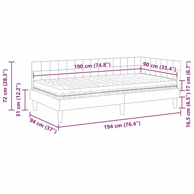 • 1 x Kotni okvir postelje: 194 x 94 x 72cm (D x Š x V)