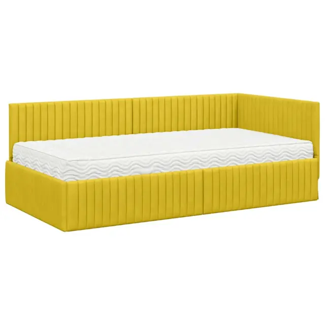 vidaXL Kotni okvir postelje z matrico z vzglavjem 2 pcs Rumena Žamet