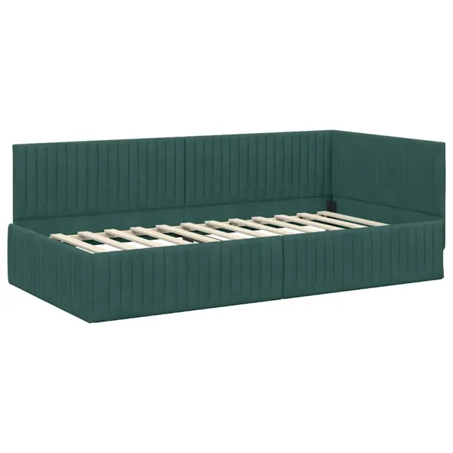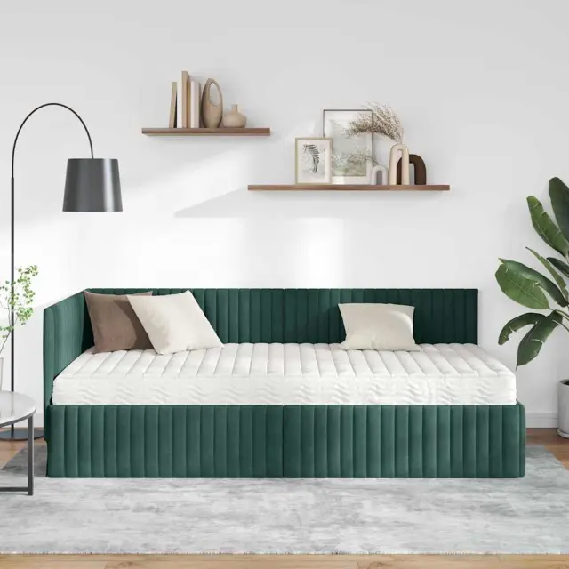 vidaXL Kotni okvir postelje z matrico z vzglavjem 2 pcs Zelena Žamet