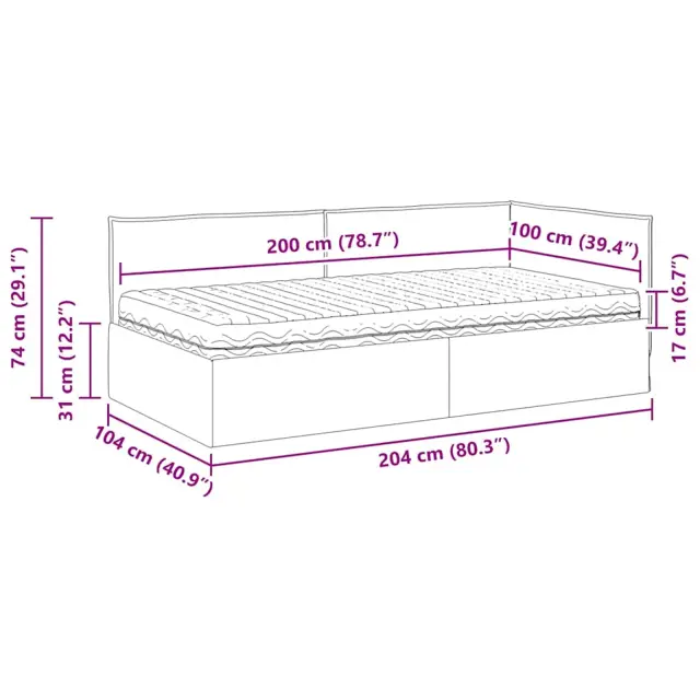 • 1 x Kotna posteljna konstrukcija: 204 x 94 x 74 cm (D x Š x V)