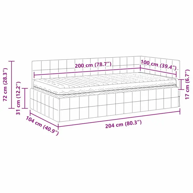 • 1 x Kotni okvir postelje: 204 x 104 x 72cm (D x Š x V)