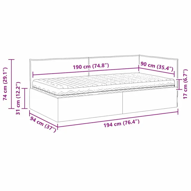 • 1 x Vzmetnica: 200 x 90 x 17 cm (D x Š x V)