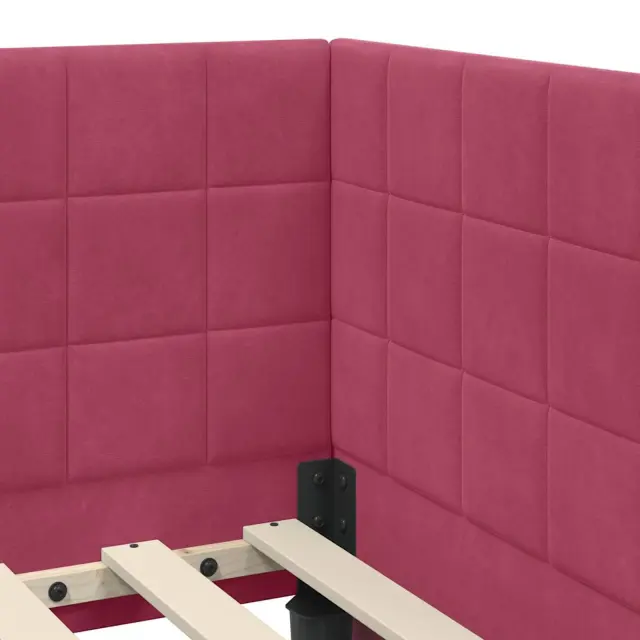 • Vzglavnik pritrjen na steno Vzglavnik iz udobnega žameta je pritrjen na steno, kar je inovativen pristop. To prihrani prostor in zagotavlja elegantno ozadje za vašo posteljo.