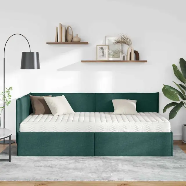 vidaXL Kotni okvir postelje z matrico z vzglavjem 2 pcs Zelena Žamet