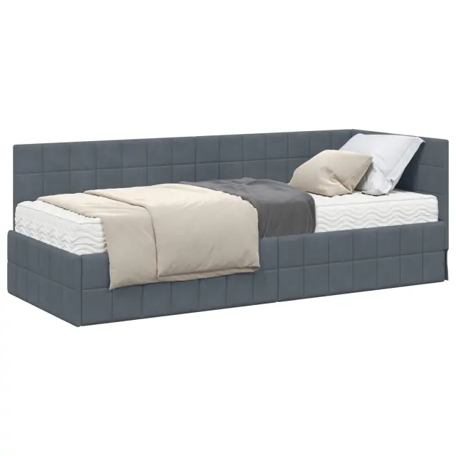 vidaXL Kotni okvir postelje z matrico z vzglavjem 2 pcs Siva Žamet