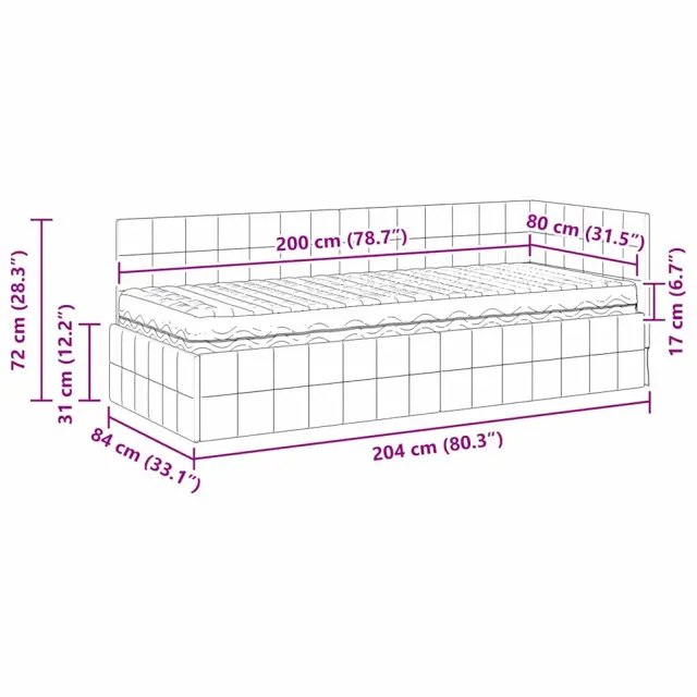 • 1 x Kotni okvir postelje: 204 x 84 x 72cm (D x Š x V)